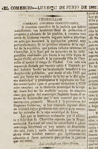 Algunos documentos darían cuenta que recién por 1861, se habría consolidado la Agencia Municipal de Chorrillos, pero lo que si por años incomodó a muchos chorrillanos, fue esa dependencia de Lima, que mostramos en una queja que publicaron un grupo de vecinos llamados “los verdaderos chorrillanos”, donde ansiaban pasar al rango de Ciudad y así lograr su independencia, que quizá no vieron, pero se consolidó recién en 1901.